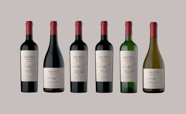 El restyling de Saurus Select estuvo a cargo del estudio Boldrini & Ficcardi e involucra tres aspectos del diseño: conceptual, estético y técnico. Se le dio un significado a la etiqueta introduciendo la figura del esqueleto del dinosaurio en un fondo color hueso. Además, se buscó transmitir carácter y elegancia a la marca, jerarquizando su procedencia patagónica. Se empleó un paño más amplio para el total de la etiqueta, que resalta los espacios generosos y las texturas del papel para jugar con la sutileza de los contrastes y el relieve. También se cambió el color de cápsula para una mejor visibilidad y presencia en góndola.